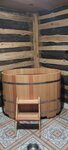 Вроде всё не плохо. Но есть одно большое НО. Нет бассейна! Вместо него кадка, в которую не особо хочется залазить... И в парилке в основном места на верху, внизу мало места и топка близко, очень жарко...