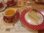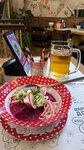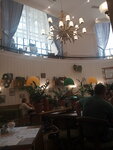Плюсы.1. Быстро готовят (суп, два горячих, пиво, чай, десерт). Еду принесли в течении 5-10 минут. То есть за час перед поездом нам удалось поесть. 2. Моё блюдо, окунь с рисом были вкусно приготовлены. 3. Цены адекватные. 4. Официанты работали чётко и были дружелюбные. Минусы. Я была тут в 2018 году. Было заметно лучше и меню было разнообразнее. Самое большое разочарование это сметанник по рецепту бабушки. Раньше это был воздушный торт с голубикой со странным кремом. А сейчас это какой-то клёклый недочизкейк, вид которого не совпадает с картинкой из меню. И нет шоколадных вареников с вишней.