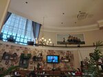 Еда чуть пресная, но это дело вкуса. Нормальные пельмени, большие порции. Солянка (суп) очень вкусная. Интересный интерьер под старину, на втором этаже ИМХО уютнее. Официанты стараются. На столах листы бумаги (скатерти) с играми, чтобы нескучно было ждать еду, но приносят быстро. Чек от 800р (пельмени+кофе) до 2000 на человека (полный обед), на мой взгляд дороговато, но на то и оно "привокзальное" заведение.