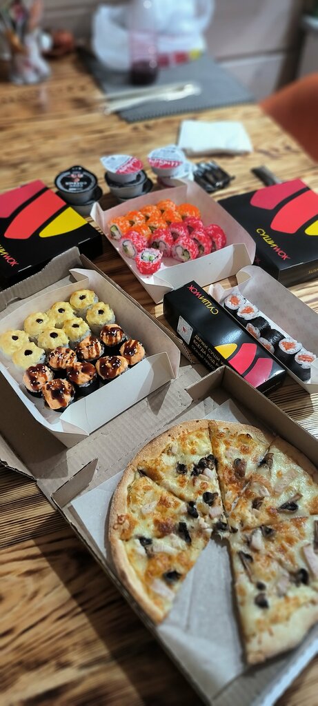 Заказывали уже три раза доставку. Номера заказов: № 388-574-463-331 совершен 10.11.26 в 16:51, № 404-454-637-278 совершен 14.11.25 в 13:31, а также заказ был сделан через сервис "Чиббис" фото чека прикреплю ниже. Как уже можно понять очень довольны, доставляли довольно быстро, не опаздывали, сервис очень хороший, позвонили все уточнили после совершения заказа, все варианты оплаты есть, ребята очень стараются. ГЛАВНОЕ ЦЕНЫ!! Очень приятные по сравнению с другими доставками, поэтому еще теперь выбираем Суши Wok, цена качество полностью соответствуют, очень все вкусно, заказывали роллы, онигири, пиццы и воки, все понравилось, комплектация хорошая, на 1к рублей вдвоем можно наесться легко, также есть бизнес-ланчи, где еще можно дешевле покушать. По рекомендациям, хотелось бы большего разнообразия салатов, например, тот же греческий или салат цезарь с курицей или креветками очень бы хотели заказать у вас, также хотелось бы больше роллов с курицей и горячие роллы в панировке с той же самой курицей я бы очень хотела увидеть в меню. Услышали про заведение от знакомых, они тоже очень хвалили. Также из плюсов бесплатный морс в подарок, а также персональная скидка, растет при росте количества заказов, у меня после 3 заказов 7% персональная скидка. Обязательно будем заказывать еще, пока только положительные эмоции.