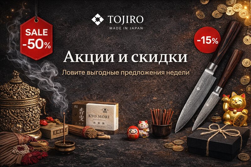 В наших магазинах Tojiro вы можете купить не только японские ножи, но и аутентичные японские сувениры и благовония. Мы привозим традиционные...