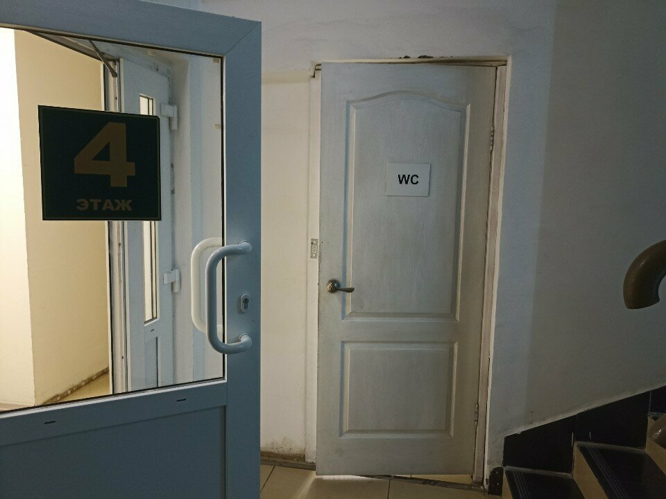 На 4 этаже где лестиница (не со стороны лифта), надо пройти вперед по коридору. Есть горячая вода, мыло, бумага