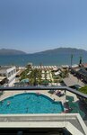 We rested for 7 nights in early July 2025. The hotel has exceeded expectations! The room is in the main building, 2nd floor, the last one with a sea view.We also had a window on the side of the palm tree 😊 It's a very nice view, even though it's on a low floor. Everything in the room is quite new. A kettle and a capsule coffee machine. When cleaning, everything is replenished and 2 bottles of water of 1.5 liters are placed. Water is freely available - in 0.5 bottles in several places around the clock. The bed is comfortable, the bed linen is new and snow-white. Another sofa. The hotel has its own beach. It's small, but there's always room. You don't often have your own beach in Marmaris. This is a profitable plus. Beach towels are provided at the SPA. The SPA itself has not been tested. The food exceeded all expectations! Everything is super! Everything is just perfect here! All dishes are signed, with KBJU. Special thanks to the chef!!! The guys working in the restaurant did great, the plates were cleaned within 2 minutes. It's a sweet table! My favorites are the Sans Sebastian cheesecake and an interesting dessert, mashed figs with caramel. It's like a good coffee shop. Everything is very tasty!!!! Fruits - watermelons, melons, oranges, red apples. Everything is ripe. The hotel's territory is small. Swimming pool. There is a lawn with sun beds in front of the pool. Therefore, everyone was somehow evenly distributed. The contingent is British. There are a few Poles and Russians. Everything is OK with everyone. There is no animation in the hotel. That's a plus for me. DJ twice a week. There was also a Witeparty Angel girls with wings all in white walked, belly dancing and something else danceable. Near Migros (online store) .And the shopping center, where there is an exchanger with a good exchange rate. We are very satisfied with the hotel! Everything was at the level of not a bad 5!!! Turkey, once again çok teşekkür ederim for the sea and the beauty around!!!