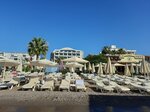 Many reviews were read before choosing this hotel. Even in October, the price was not very affordable, let alone in September or August. But everyone praised the location, the food, the drinks, the sea... Bought it ) Now, first of all, about the sensations 1. The location is a solid five. Consider this the very center. You can walk both in the direction of the port and in the other. If you like it, it's very convenient. 2. Shops and cafes are all nearby, within walking distance 3. There is a hookah nearby - for lovers 4. The pool is small and cold enough. For us vacationers in October, it didn't seem like a very good option. 5. Sea comfort for those who like cool water. If there is a strong wind, it is also uncomfortable to leave the water. 6. I didn't like the sea itself. There are cigarette butts and a lot of dirt on the bottom, plus clear oil traces from fuel on the water. The entrance to the water is pleasant. Not rocks, but sand, by the way, there are a lot of fish in the water, it's interesting to watch them. 7. The food is three-fold. There is little choice, queues even in this season, plus fresh food is prepared only for breakfast. Omelet, fried eggs, boiled eggs. They did gyuzleme once 8. Alcohol - I started having heartburn, which is extremely rare. Gradually, prosecco, beer, and rose wine disappeared. The cocktails are peculiar - Gin and tonic with lots of greens for some reason, I don't understand why. Gin Fizz - a lot of chemistry, immediately catches the stomach. We haven't tried strong drinks. 9. The territory of the hotel is small, or rather it is a swimming pool and sun beds. Plus a small beach by the sea. 10. In the evening there is a bar where people hang out and plus you can walk along the embankment. A walk for an hour or more is more according to the possibilities and desires The overall impression is not my hotel, not my vacation. I understand perfectly well that someone will say that this is a good option, I'm just very picky about the quality of food and alcohol.