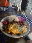 The decor is rustic, but the portions are large and well-cooked. We took fish, shrimps with a variety of joints, fresh juices, water- 180dx for two. We recommend choosing a table on the veranda, there are air conditioners in the hall - it's cold.