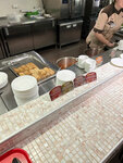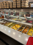 Принцип шведского стола. Набираешь еду и на кассу. Большой выбор, адекватные цены. Много столов. Есть мороженое и сладости на десерт. Три первых блюда. Много гарниров и салатов. Курица, свинина и рыба. Отдельно - чайное и кофейное меню.
