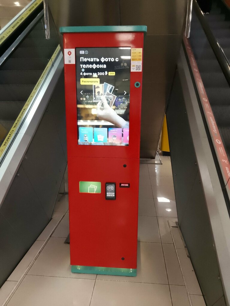 Удобный автомат для печати фото! Качество замечательное, в итоге получаются небольшие глянцевые фотокарточки. Однако, если печатаете много, то придётся прилично подождать, на одно фото уходит ~30-45 секунд Прайс: 2 фото—100 рублей, 8 фото—300 рублей, 16 фото—500 рублей, 36 фото—1000 рублей