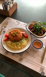 There are no questions, there are a lot of questions, we went into the institution, booked a table in advance, the waiters ignored, approached the administrator, the girl wanted to seat us at the table, which was not cleaned after the guests, ordered a set from the gastrofest, food for fans of the USSR, peculiar cocktails, I liked coffee and croutons packed into a nice little mug, + location + live music - shared bathroom - the attitude of the staff
