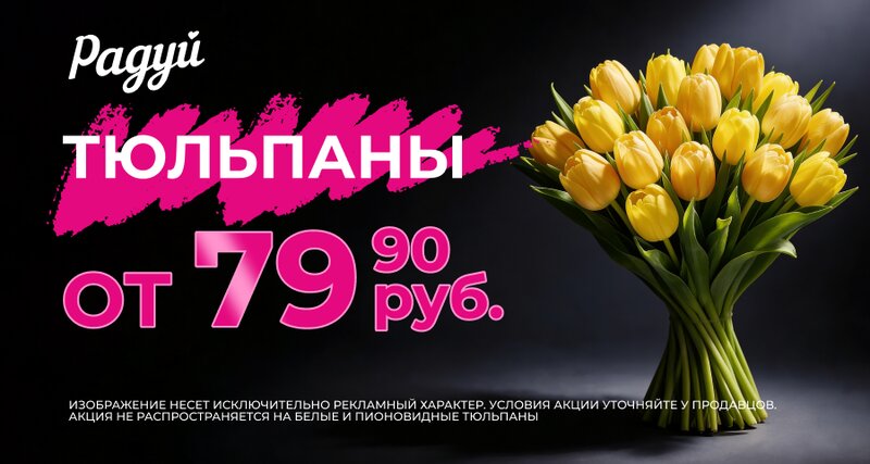 🌸 Тюльпаны всего за 79,90 рублей — создайте букет из нежности и солнца! Успейте порадовать себя и тех, кого любите 🌷✨