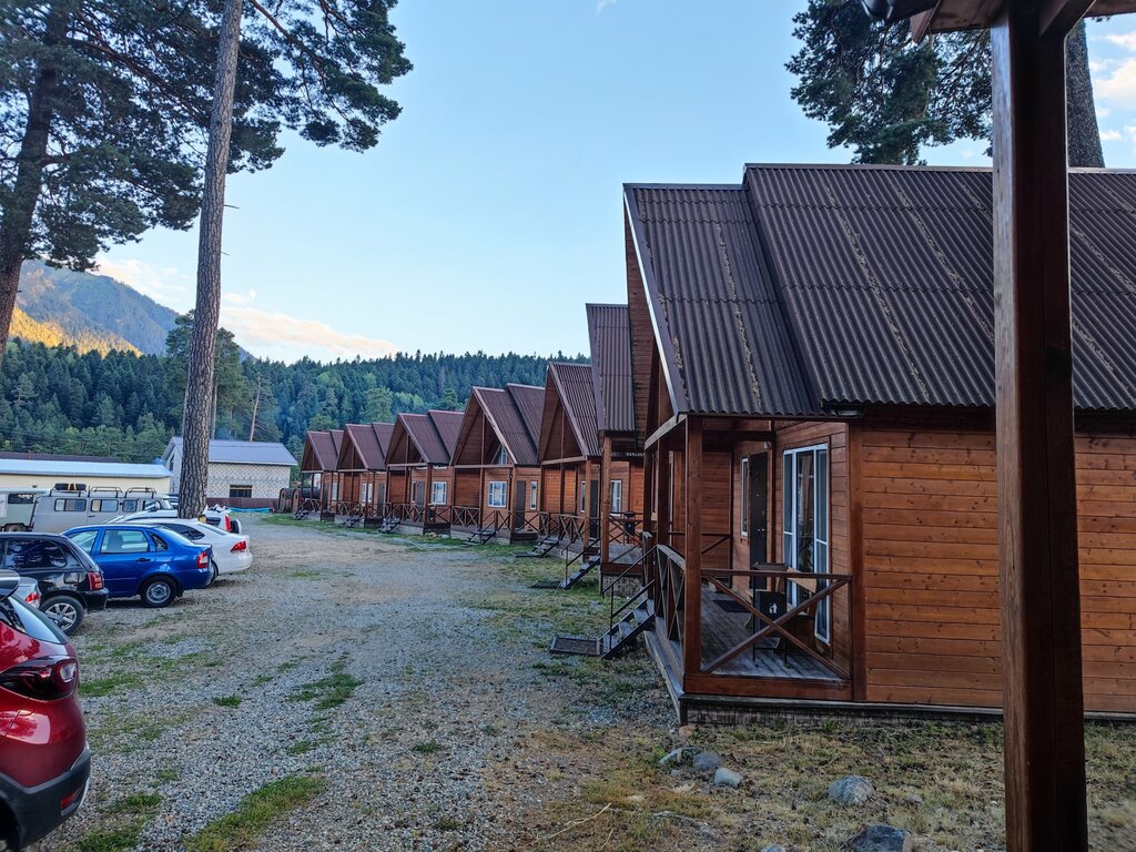 Чудесное место в Архызе, красота! Атмосфера прелесть, доброжелательные все сотрудники, особенно хочу поблагодарить администратора Елену. Домиков много но и беседок к ним много, возле каждой беседки мангал, никто никому не мешает и не ждёт очереди. Номера свежие и чистые, пахнет деревом, отапливаются по потребности, вода горячая с прекрасным напором. Баня на дровах с вкусным чаем и потом холодный бассейн на улице- это вообще не передаваемые ощущения! А огромная, уходящая в небо фигура медведя по имени Аслан на территории - это произведение искусства и мастерства (спасибо мастеру), как визитная карточка базы. Обязательно приедем ещё!