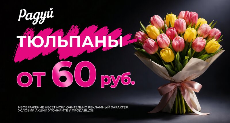 🌸 Тюльпаны всего за 60 рублей — создайте букет из нежности и солнца! Успейте порадовать себя и тех, кого любите 🌷✨