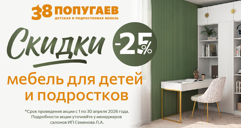 Весь апрель: Скидки -25% на мебель для детей и подростков! Скидки до 60% на витринные образцы!