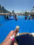 A very cool beach club - there is an Instagram pool with a transparent wall, a Jacuzzi, a bar, sun beds of several types, amenities (2 bathrooms - one next to the beach, the other in the building, both have everything you need, towels and even various creams and lotions). Women's Day - girl free admission + cocktail. The usual entrance is 200 dirhams, half of which is a voucher for food and drinks. We were very satisfied.