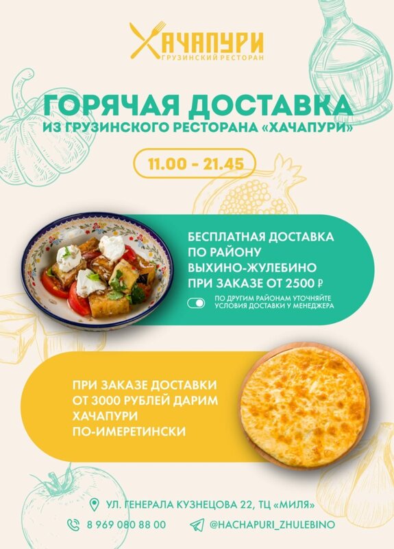 При заказе доставки на нашем сайте - дарим хачапури по-имеретински