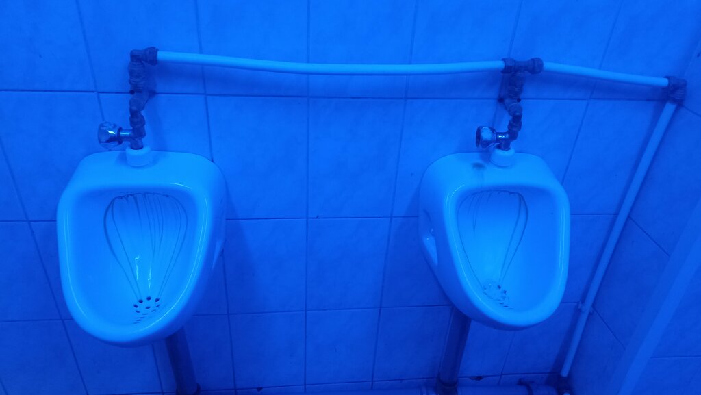 Худший туалет из всех, которые я видел за года 4. Отсутствует всё, кроме горячей воды. Туалетной бумаги и мыла нет, про "сидушки" вообще молчу (мужской туалет), берите всё с собой. Синий свет способствует,