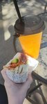 Захотелось хотдог, а тут этот вагончик. Хотдог в лаваше + лимонад = 700 рублей. Неплохо, но дороговато. Лимонад представляет собой очень мелко поколотый лед (но все равно вкусно). В лаваше сосиска (типо охотнечьей), огурчик, кетчуп, морковка, помидор и капуста. Готовили около 10 минут (очереди небыло) Находится возле памятника. В холодильнике стояли еще разные напитки типо газировок, милкиса, воды и тд. Не отравилась, все хорошо