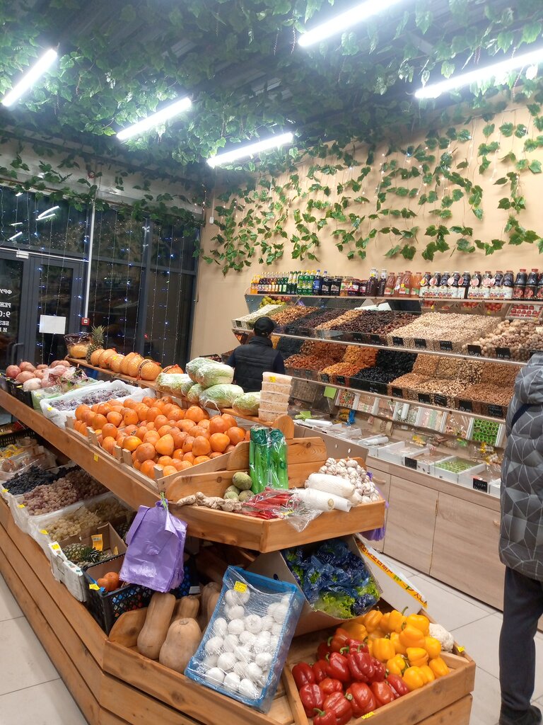 Ассортимент хороший, но таких цен я не видела нигде ! Огурцы 350 ?! Помидоры 450 ? Знаете , что самое смешное ?! Они овощи покупают в 5ке и продают их дороже ! Это в голове не укладывается! Желаю собственникам хороших КОНКУРЕНТОВ от всего сердца! Справедливость должна быть .