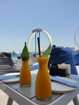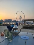 A pleasant place, you can sunbathe during the day on soft ottomans with a view of the Ferris wheel