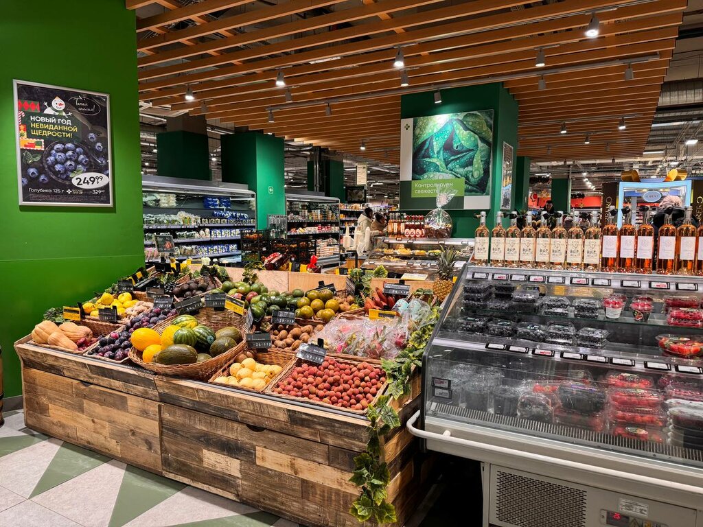 Большой магазин, я бы сказала огромный. Есть огромный выбор товаров, поэтому каждый найдет, что ему нравится. Цены, конечно, кусачие, но они сейчас везде такие. Удобно, что есть онлайн кассы, где можно быстро оплатить товар. Есть места, где можно перекусить. Минус - это народ, в обед студенты в поисках энергии, вечером рабочий класс, школольньки и студенты. Вообще само месторасположение говорит за себя, что народа здесь много всегда, поэтому если вы искали тихое место, чтобы купить продукты — это не для вас. Плюс можно попасть с разных входов, так и внутри легко спуститься на эскалаторе.