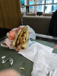 Утро, 9 утра клиентов мало,всего 3-4 человека в зале, но столы ужасно грязные, жирные. Из более чем 10-15 свободных столов удалось найти только один приемлемый, куда можно было бы сесть. Не стал бы писать комментарии из-за такой казалось бы мелочи, но сендвич который я заказал, на вкус будто испорченный, не стал есть