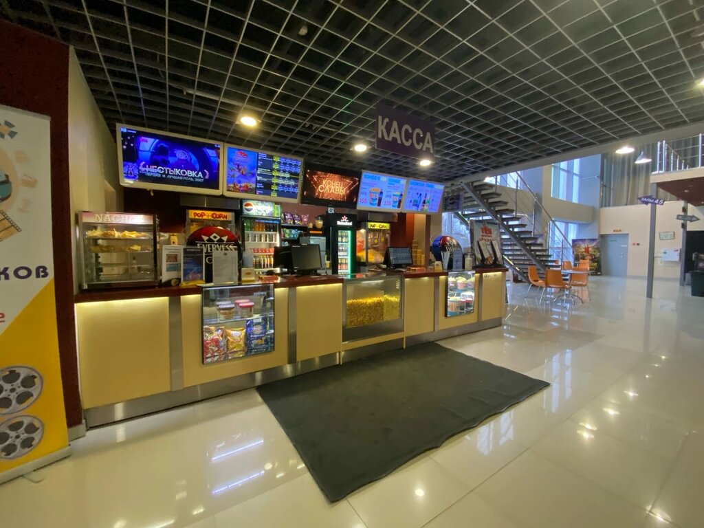 Кинотеатр находится в торговом центре на последнем этаже ( в ТЦ есть лифт). Зал ( есть несколько) небольшой , но уютный. Все чисто и опрятно. Теперь о неприятном, что я увидел: в туалет не попасть, если вы не взяли на кассе бумажку с кодом!!! Нет кода, нет туалета!!! Сам туалет вонючка… спрашивается, от кого закрывают на код вонючий туалет? Ответа нет…