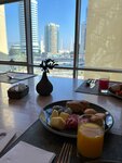 Nice hotel and friendly staff, heated swimming pool. There is also a hammam, sauna and gym (few exercise machines, mostly treadmills). He lived in room 1704 on the 17th floor with a view of the bay. Of the cons: - upon checking into the room, I immediately discovered that there were no batteries in the TV remote control. After the reception call, they were brought in about 40 minutes later; - there were no disposable toothbrushes and toothpaste (after all, a 5* hotel and such...); - the bathroom mirror was dusty above eye level, which was also disappointing. Meals: breakfast is served on the 1st floor in the form of a buffet. The menu is quite varied and delicious.