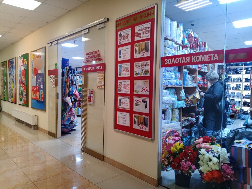 Небольшой отдел магазина «Золотая комета». Поверьте)), всё что нужно в быту, всё есть! 🙌❤️🤝 Очень много разнообразного товара. И бытовая химия, и косметика, и товары для дома, посуда, канцтовары, разные мелочи для быта - всё можете найти в этом отделе! Можете приходить с огромным списком своих покупок и всё здесь купите. Много товаров импортного производства, что очень радует! Мне очень понравился👍 Без покупки не уйдёте, гарантирую! Такие магазины с таким ассортиментом очень редки сейчас. Всегда порядок и чистота. Продавцы вежливы и компетентны! Большое спасибо за такой рай для хозяюшек😊🙏🥰