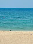 A normal public beach. There are a lot of non-working buildings, there are several street food shops for snacking (fresh food, ice cream, smoothies, fast food, tea, coffee, water), there are paid showers and toilets in the form of colorful houses, but there is also a free shower. I didn't find any changing booths open for money, so I went into the paid shower, didn't pay, and just changed there. The sea is calm here, there were small waves only once when the wind picked up from the sea. There aren't too many people, but I even liked it. Umbrellas, bag chairs for money, I haven't seen sun beds. The further away from the sea, the more garbage there is (cigarette butts, sunflower husks) A residential complex is being built in relative proximity and the sounds of construction are heard periodically.