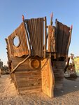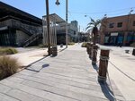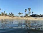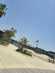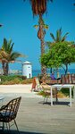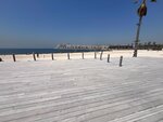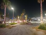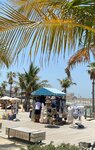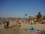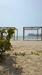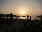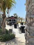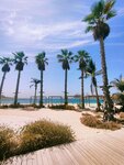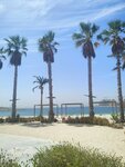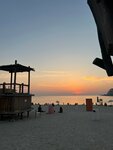 Quiet and cozy beach, few people. There are palm trees under which you can hide from the sun. Shower cabins can be used as changing rooms (the water in the cabins is paid). You can wash your feet and roll off for free. There is little infrastructure on the beach - there are only a few places with food and drinks, but there are few people and there are no queues, you can easily buy everything you need - ice cream, juices, smoothies, water, there is a tent with beach accessories, as well as a trailer with food for a snack. The beach itself is beautifully decorated in a pirate style, illuminated in the evening, although you can not swim after sunset. There are lifeguards, you can rent an umbrella. The entry into the water is smooth and shallow. The water is calm, without waves, clean, small fish swim near the shore. In general, the beach will appeal to lovers of a calm, non-crowded place, a sea without waves. There's a construction site nearby, but it didn't stop you from relaxing.