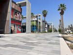 The beach is abandoned at the beginning of April (or maybe forever), although there are lifeguards and guards. There is one street food trailer, a couple of trays with ice cream and smoothies. There is a shower on the beach. It can be seen that there used to be a lot of life here, along the beach all the buildings are functionally designed for cafes, restaurants, clubs, etc., but now they are not used. The water is clear only if the wind is not blowing from the sea. Otherwise, the water becomes dirty.