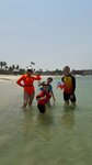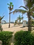 Out of season (until about October 15th), there are not many people. You can lie in the shade of palm trees. The water is very warm. Cool down so that it doesn't work out very well. The shower wasn't working. But there is an alternative- a street shower. In the form of buckets on a pole). The sand is white. There are small shells. Schools of small fish swim in the water near the shore. The cafes are open only during the season. So you need to bring water with you. There is a toilet and changing rooms. There are 4 rescuers working. They only know Arabic. Into Russian, via the translator app.