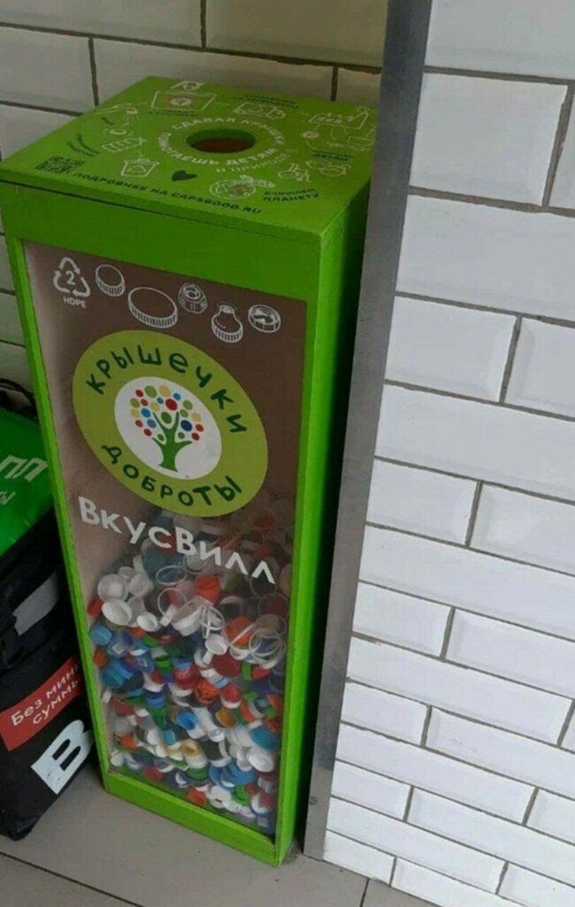 Description:Как найти объект: В контейнер можно класть пластиковые крышечки 2/HDPE, 4/LDPE и 5/PP. Все крышечки должны быть чистыми. Подробные правила приема указаны на ресурсах проекта.
