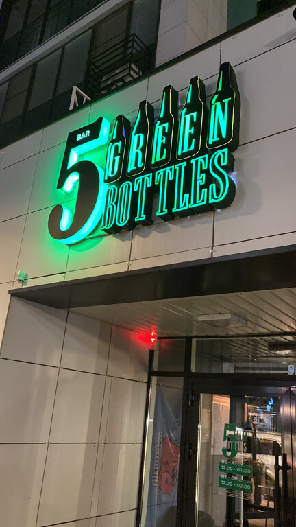 История первого бара 5 Green Bottles на Разведчика Ахмерова, 5 (Art City) началась в 2019 году. На тот момент, у будущего владельца заведен...