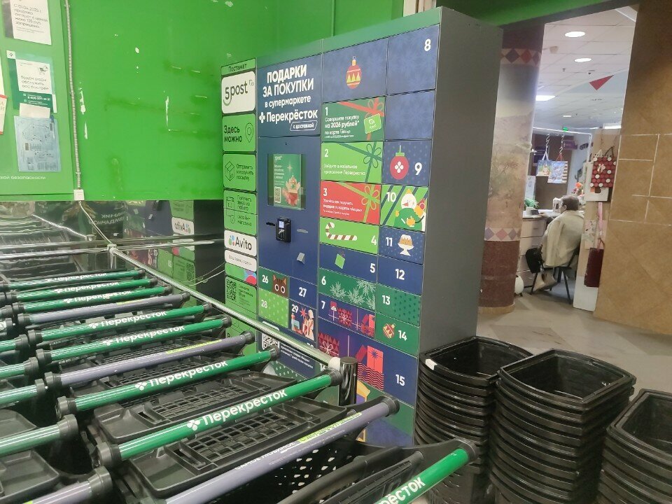 Удобное расположение прям при входе в супермаркет перекресток, понятно и легко в использовании просто следовать инструкции на экране, доставляют по разному когда быстро, а иногда долго