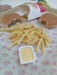 Вкусные чизбургеры, ничего лишнего, удобные, хорошая порция горячая картошки фри, очень все понравилось Персонал хороший Оьслуживание быстрое как на заказ, так и на выдачу заказа Столики чистые
