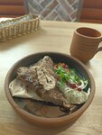 Хинкали из тонко раскатанного теста с начинкой из бараньего фарша и аджики, с пряным насыщенным бульоном и ароматной кинзой внутри.