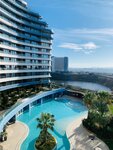 A very average hotel for a lot of money by Turkish standards. Everything looks very decent, but extremely non-functional. It will go for a business trip, but not for recreation/tourism. We ordered several rooms for a large family, subsequently changed them and eventually moved out when the hotel staff could not prepare a room with three single beds, although we were assured several times that this was not a problem. For the same money, you can get a room with a completely different layout. One room was spacious, in the other there was a passage of 40 centimeters between the beds and the opposite wall. One person in the family needed a wheelchair, and it simply did not pass there. At the same time, we were convinced that only two beds would fit in a more spacious room, and they promised to put a third in a cramped one. When asked where, they just threw up their hands. All rooms have an equally uncomfortable shower, in which, when you turn on the water, you inevitably get ice water on your head. The towel hooks are right inside the shower stall, and these are the only hooks in the entire room. There is also a 220V outlet in the shower right next to the watering can. In some rooms, the wardrobe is not in the hallway, but by the beds on the far side of the room. There are no hooks for outerwear and shoe racks in the rooms, only one closet with three small drawers and 5 hangers. The door to the toilet/bathroom in one of the rooms was broken and would not close. There is only one table in the room, for one person. There may or may not be a laptop charging socket near the desktop - as luck would have it. Moreover, floor lamps and other lamps inserted into the socket are initially controlled by keys near the beds. It is very inconvenient to charge something from these outlets because of this. There is an HDMI outlet to connect the laptop to the TV, but it does not work, the staff says that this is normal and it is intended (?). They only offer to remove the TV and connect your cord directly to it, if you have one. There is a good SPA, we tried a fitness room, a wet and dry sauna, a swimming pool. However, one day the pool was just closed. If you check in for 2-3 days, you may just not get there. The staff speaks only Turkish, apart from some waiters and the reception, they also understand English. Apparently, they smoke in the rooms, and this is severely clogged with a vanilla outlet, which smells everywhere here. The location of the hotel is controversial, on the one hand there is a great view of the coastline, on the other hand the walking accessibility of the city is very poor - you have to run across the road and cross the railway tracks, but there is a taxi parking right next to the hotel. There is a mini-courtyard with an outdoor pool, and immediately behind it, behind a transparent fence, a pit has been dug for a new building with a swamp and a garbage dump. Some rooms have a balcony view directly onto it. There is Internet in the rooms and on the territory, 5-15 Mbit WiFi, 20-25 Mbit by wire (power outlet near the table). The breakfast is decent, the selection is good and delicious.