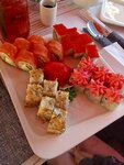 Решили с семьей зайти покушать, заказали два том-яма с морепродуктами, роллы "темпура с угрём", и милк шейк. Том-ям оказался великолепным! Сладкие помидорки, королевские креветки очень удивили! Оригинальная подача блюд также радует. Роллы тоже хорошо показали себя, очень вкусные, хрустящие, насыщенные. Милк шейк сверху украшен взбитыми сливками, что очень радует. Советуем попробовать том-ям с морепродуктами! На счет интерьера: все красиво украшено в серо-белых тонах и нотке красного, повсюде красивые лампы, подсветка, удобные диваны, музыка. Заведение потрясающее!