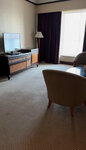 Minuses: 1. The hotel is really old, from the rust on the bathroom mirror to the stains on the wallpaper, from the damaged chair to the crooked lamp, because it is missing one leg. But if you are not too picky a tourist, then you will have a great time there. 2. The smell in the room - it feels like the rooms have been smoky for a long time. They spray it with hotel perfumes, but it doesn't really help. The windows don't open, as they do everywhere in the UAE, and the air conditioner takes air from the room itself and just drives it around in circles. You can only ventilate by opening the door to the corridor, if, of course, there is fresh air there :) Things will have to be completely cleaned after the hotel, but you can quickly get used to it on the spot. After an hour, we didn't pay much attention to it anymore. 3. Cleaning is not very good. Upon arrival, they asked to vacuum the carpet in the room, as the carpet was very dirty, and in the first minute there were 2 needles, hair, threads, and small debris on it. You can't walk around with your shoes off, and I don't recommend it. They vacuumed quickly, but apparently they didn't come in with a vacuum cleaner all 10 days of our arrival. They give you slippers (some, but you can ask for a second one), there are no bathrobes. 4. Dirty windows on the outside, and there's nothing you can do about it. They probably wash it several times a year, since the hotel is high-rise. They got used to it quickly and hardly noticed. 5. Ice pools. Both. Temperature of Lake Baikal. We dived once and saw a couple of times that the children were splashing, but it was really very cold. 6. A small drawback with drying any underwear: swimsuits barely dry, since there are no batteries or a balcony, they were placed on the windowsill, where there is more sun. There's a dryer right in the bathroom, but there's a lot of humidity. The rest of the things were dried on a laid-out ironing board (it is in the closet), since the room's space allows you to live freely with it. Positive: 1. Spacious and awesome room (we had a view of the Khalid Lagoon, 611) with stunning views. Huge floor-to-ceiling windows. Impressive both day and night. Fountains are visible, it's a pleasure to wake up with such a view. There is more than enough room for two people. The sofa was a separate kind of thrill - to relax in the evenings and look at the city. A very large and roomy wardrobe, lots of cabinets and bedside tables, large and small. You will definitely find a place where to place all your belongings, including suitcases. Large, comfortable bed, sleeps well. There is a kettle in the room, a tea and coffee set, water (and we bought our own in 5-liter eggplants additionally), cups. 2. The location is amazing. A taxi is caught in 10 seconds immediately at the entrance to the hotel. The embankment is across the street, the atmosphere is very conducive to walking and romance. There are also grocery stores, pharmacies, currency exchanges, cafes, restaurants and everything you need. We walked to the beach by 3 different roads (there are better ones, there are worse ones), and we took a taxi and a free bus. The bus goes there at 10, but the queue starts to gather in 20 minutes. They take everyone in turn until everyone is picked up, it's usually 3 buses. Back from the beach - at 13 o'clock, the same thing, they pick up everyone, and the queue is ready for 20 minutes. Beach towels are provided by the pool on the 2nd floor (via elevator), in fact - on the third. 3. They take you to Alkhan beach. We liked the beach. If you go to the very end, where there are changing rooms and toilets, there are 3 times fewer people there and it is much quieter. There is everything you need: decent showers, changing rooms, toilets. Rescuers are constantly on the lookout. The sea is beautiful (February 10-21), the water is warm (I'm still that cold). The sun is very active and treacherous. It seems that you are sitting, warming yourself, nothing bakes, in the evening the result of sunburn begins to appear, turning into burning. Be careful. 4. The food at the hotel is a separate song. Just a solid five. If, of course, you come for breakfast or dinner (we had breakfast +dinner) at the end, then you may find that something is no longer there. If you don't stay too long, there will be a complete set. Again, if something is over, go to the waiter and ask for it. They are constantly preparing and delivering all this, but sometimes you will have to wait until it is ready. The breakfasts are great: lots of different delicious and juicy greens (arugula, iceberg, sprouted greens, various kinds of salad leaves), snacks (hummus, etc.), cheeses of various types, from maasdam to cream cheese, by the way, everything is delicious; both chicken and beef sausages, fried bacon (not pork, but very tasty), boiled eggs, scrambled eggs, plus scrambled eggs of various kinds prepared by your cook; tomatoes, cucumbers, various pickles, stewed vegetables such as broccoli, cauliflower, carrots, zucchini; meat dishes: chicken, beef or lamb, olives, olives, apples, bananas, awesome melons, watermelons, pineapples, oatmeal, various fruits from cans (peaches, pineapples, etc.), yogurt, fried rice or with vegetables, beans, 2 types of soups, chicken sausages (not very), various additives (jams, honey, nutella, lemons, dried fruits, nuts, etc.), local fried pies, pancakes (a chef prepares on-site for you upon request), various types of bread, croissants, butter, local dishes such as shakshuka and whose names I do not know, sweet pastries: very tasty croissants, snails, muffins, buns. Tea, coffee, milk, juices, detox water. And it's just breakfast :) The menu is updated every day, but the main dishes are almost the same. They can cook meat dishes in a different way, add salads, such as Greek or caesar, add cakes or pastries. There is less choice for dinner, but awesome desserts are added: panakota, various cakes and pastries (red velvet, black 