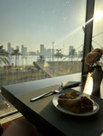 I stayed at this hotel from 25.02 to 05.03. The hotel is located in the center of Sharjah, next to a beautiful lagoon, a great place for evening walks. There are many shops, a pizzeria, a fish restaurant and other places within walking distance where you can always find food for every taste. I had breakfast included. Breakfast is standard: omelette, scrambled eggs, boiled eggs, salads, cheeses, sausages, pancakes, waffles and other pastries. Fruits are always melon, pineapple, watermelon, bananas, oranges. Coffee from the coffee machine. The restaurant offers a beautiful view of the lagoon. The room is large, the bed is comfortable. There is a safe, a hairdryer and everything you need. Cleaning, of course, makes you do better. The furniture in the room is tired, but everything works. The staff is friendly. A wonderful girl Olga is sitting on the ground floor at the entrance. I took all the excursions from her and recommend them to everyone. She is very responsive and always ready to help, she will tell you where everything is, just a lifesaver for tourists!!! Summary: the vacation was a success, I'm happy. In general, I recommend the hotel, the price corresponds to the quality, it must be understood.