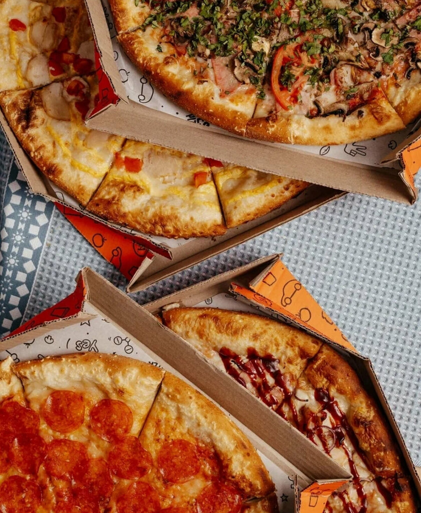 Четыре пиццы (23 см). Ассортимент ограничен. Комбо для 5-7 человек. Вес комбо зависит от веса входящих в него блюд