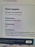 Написано что работают с 10 до 22, на самом деле работают с 9 до 21, опираюсь на расписание в приложение ВБ, сделала туда заказ, если бы я не прошла мимо и не увидела что они работают с 9 до 21, пришла бы сюда к 22)) А сотрудник не мог даже ответить нормально, я ему объясняла, а он мне говорил что я могла заказать на другой адрес 😂😂 Дальше просто начал разговаривать с другим клиентом, спасибо за отличный сервис