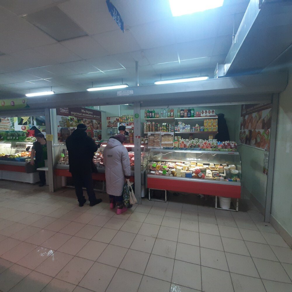 Хороший рынок в шаговой доступности с многообразным выбором товара и продуктов