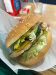 Thank you so much for the service and for the delicious chicken steak burger. I took a combo and didn't regret it, the steak just really fit into this burger. Everything is organically selected, pleasant and delicious. The waiters met at the entrance, which I would also like to note, because it's fast food) Sometimes you can't wait in restaurants for such an attitude as here. Of course, I was a little pleasantly shocked by such an attentive attitude. The music is in Kazakh, which is also very memorable in a good way. Thanks to the staff for such an attitude and to the chef for such great burgers 👍🏻👍🏻👍🏻👍🏻