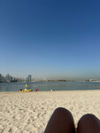 On the east side, only for residents of houses on Shoreline or paid. The sea has recently been calculated, the beaches are also always clean. There are a lot of hotels on the western part of the isthmus, there are a lot of people, even more in the evening as new restaurants have been built. Dubai's new hangout spot. Young people like it.