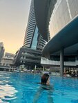 Nice hotel Excellent breakfasts Dinner was not taken, there is a small shopping center on the lower floors, there is a cool supermarket with lots of food. The beach is generally zero, the water is dirty. There are 3 pools, but they are also modest. We lived on the 38th floor, with a view bathroom, but the room itself is small, with old furniture. Therefore, you can put 5/10 for a light bath. In general, the hotel has a good location, you can see everything in a few days. They certainly don't get along with cleaning in the morning, they sometimes didn't clean up until the evening. In general, if you want to hang out in the center, this is the hotel for you. If you want a nice quiet beach, a large pool, a beautiful view, then go to Fairmont Bab Al Bahr.