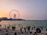 Clean sand. They clean well. View from the beach to the Eye of Dubai, and behind the skyscrapers. There are always a lot of people, but if you are not close to the water, then you can settle down. I liked this beach the most in Dubai, which I visited (not all of them visited, of course). There is not even a place to change clothes on some beaches. There are not many changing rooms on Jumeirah, but there are.