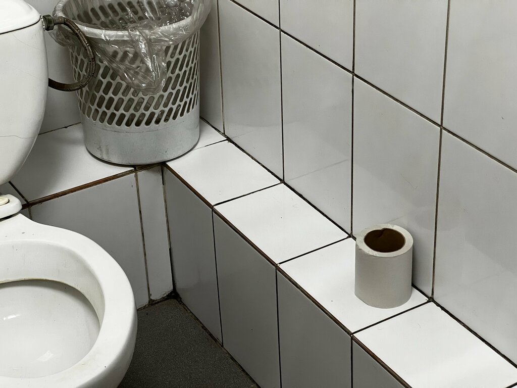 Как говорится, спасибо и на этом хах + Есть два кусочка мыла смешанных из остатком; + Есть туалетная бумага, которая стоит на полу – Две тесные кабинки и мойка для рук, к которой не подойти, если дверь кабинки открыта