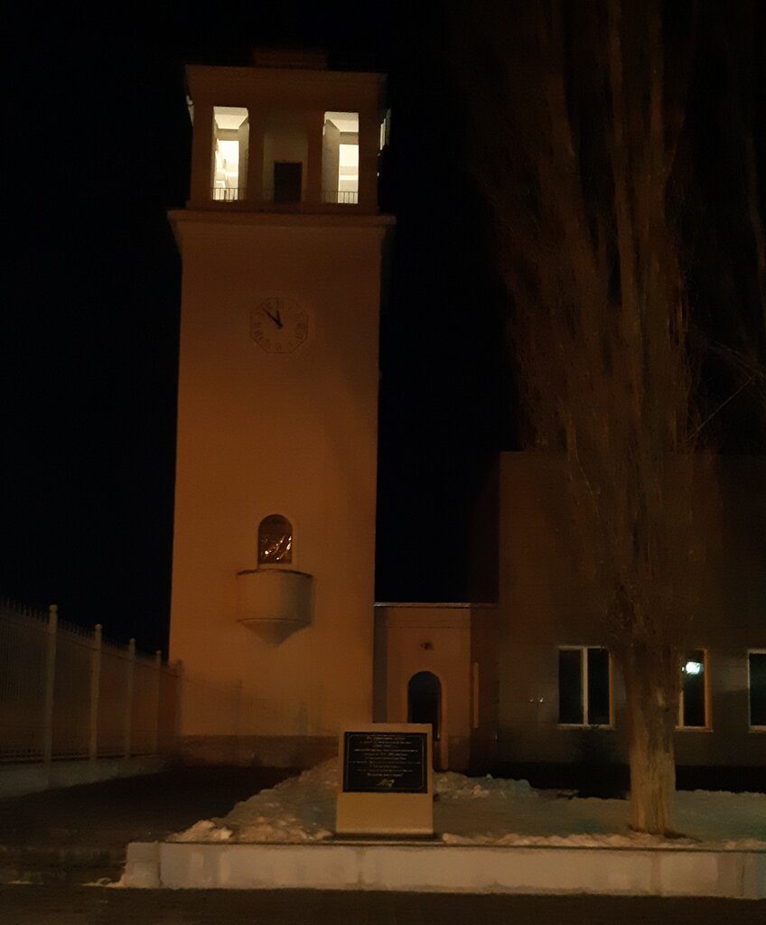 Это пожарная каланча. Когда строился рабочий посёлок Петрова, дома были не высокие и построили эту каланчу, самое высокое сооружение на посёлке в то время, для обнаружения пожара в поселке. Рядом установлена мемориальная доска 64-й армии.