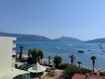 We chose this hotel according to several parameters - a large room, the outskirts of Marmaris, the lack of animation and the proximity of the sea. Of course, a nice price for the tour. The rest took place from October 1 to October 12. Lovers of silence, long walks along the sea and the absence of large crowds of people come here. The hotel is compact, very cozy, with a well-thought-out layout. All rooms have a sea view! The room is split-level, the balcony is huge, a dryer, a table, three chairs - there is a place for everything. The food, thanks to Chef Mammad, is very tasty. Breakfast and dinner are always cooked and served with a soul, Mamed loves to treat, is in the hall, friendly and sociable. Vegetables are especially delicious. There is enough space for everyone, and food too. The hotel's beach is located just behind the cafe. There are enough sun beds, you have to pay extra for the mattress. Beach towels are not provided, you need to bring them with you. The sea is clear, the approach is sand with small pebbles, then large stones. The beach itself is quite dirty, I have never seen it cleaned somehow. The main thing in Marmaris is the opportunity to take a long walk along the beautiful promenade towards the city center, or along the promenade under the pines and palm trees to Icmeler. There are beaches with very clean water close to Icmeler. I definitely recommend the hotel for those who love the nature of Turkey and long walks.